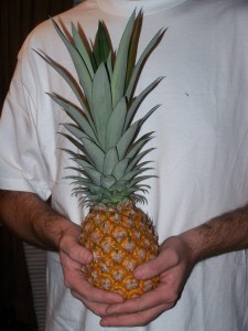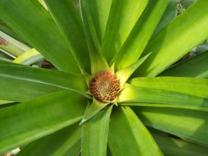 Did you know it takes two years to grow a pineapple? We knew this and so in the summer of 2011, we kept checking our plant every so often, looking and hoping for signs of a fruit. The plant grew even bigger and started growing new offshoots all around the sides. These apparently can also grow into new pineapple plants according to what I’ve read.